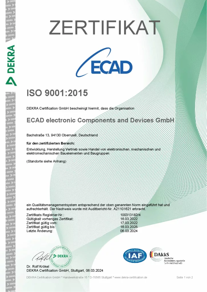 Einwandfreie Qualität bei der Erfüllung der Anforderungen unserer Kunden – und dies nicht nur im Sinne der Produktqualität – hat für ECAD in der Zusammenarbeit mit unseren Kunden und Lieferanten höchste Priorität.